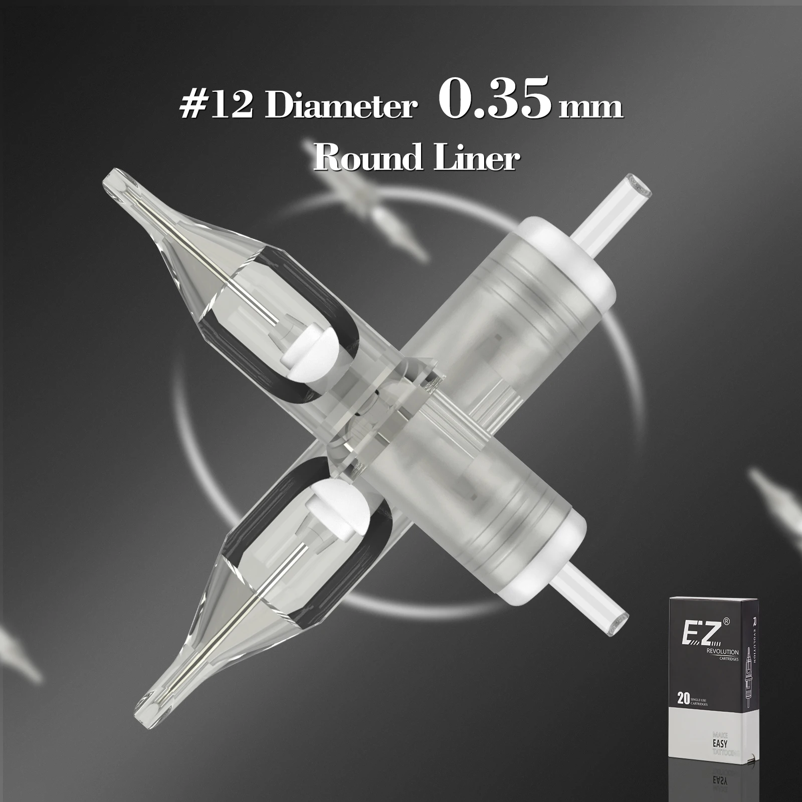 EZ Revolution Tattoo Cartridge Needle Round Liner (RL) #12 (0.35 MM) #10 (0.30 ) Long Taper Rotary Machine Supply 20 Pcs/Box