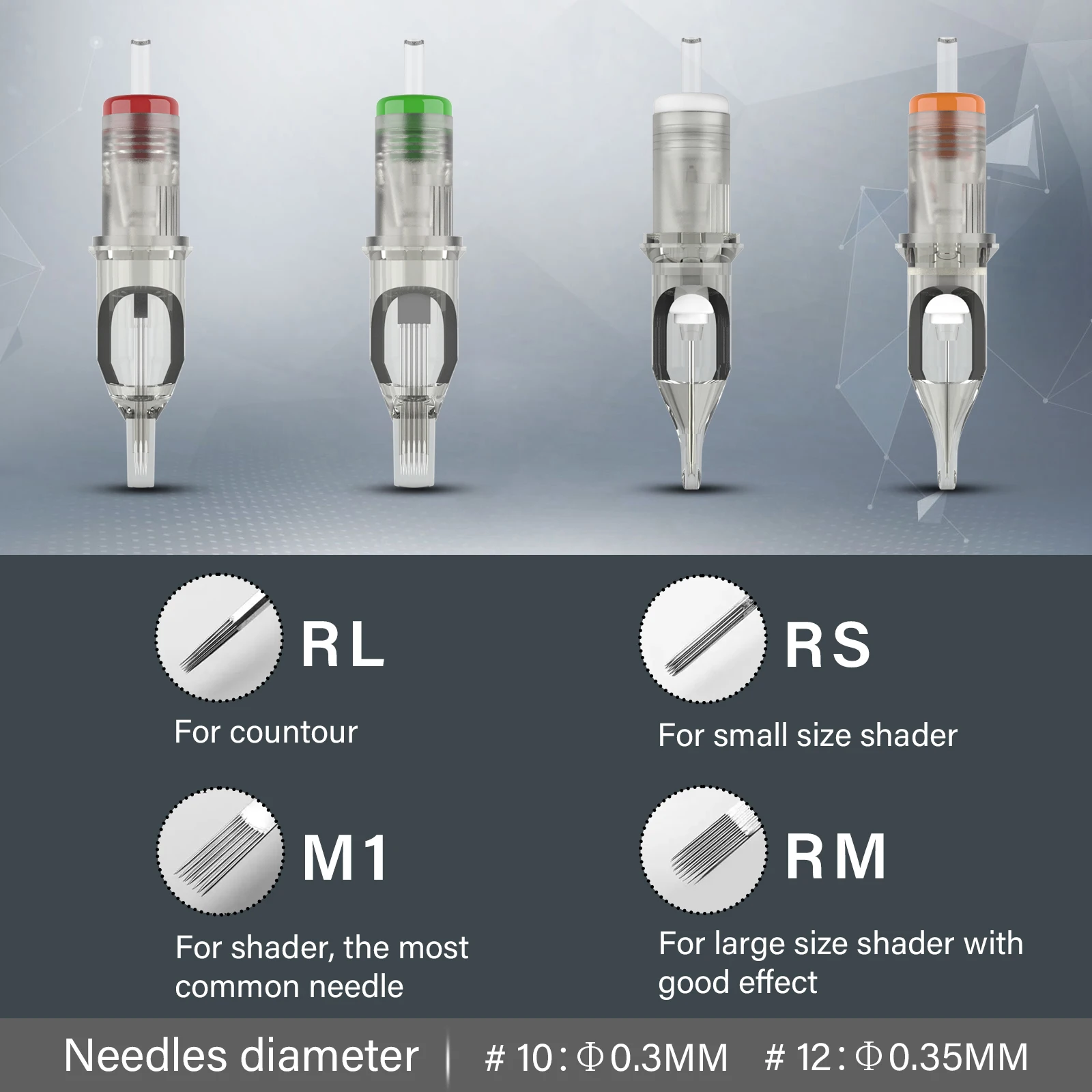 EZ Revolution Tattoo Cartridge Needle Round Liner (RL)  #12 (0.35 MM) #10 (0.30 ) Long Taper Rotary Machine Supply 20 Pcs/Box