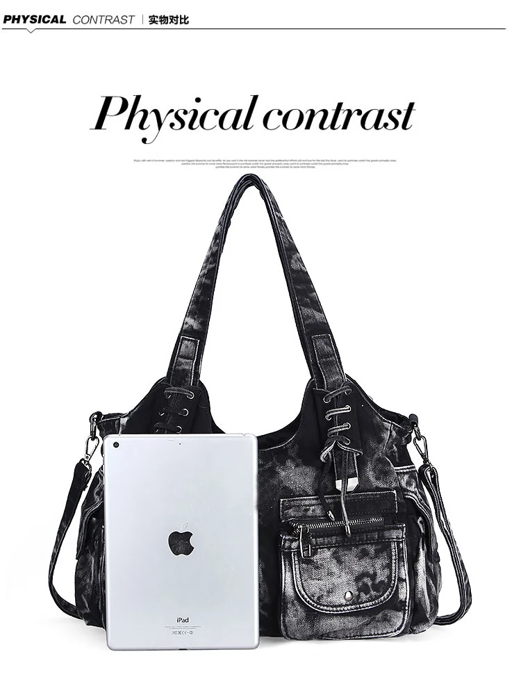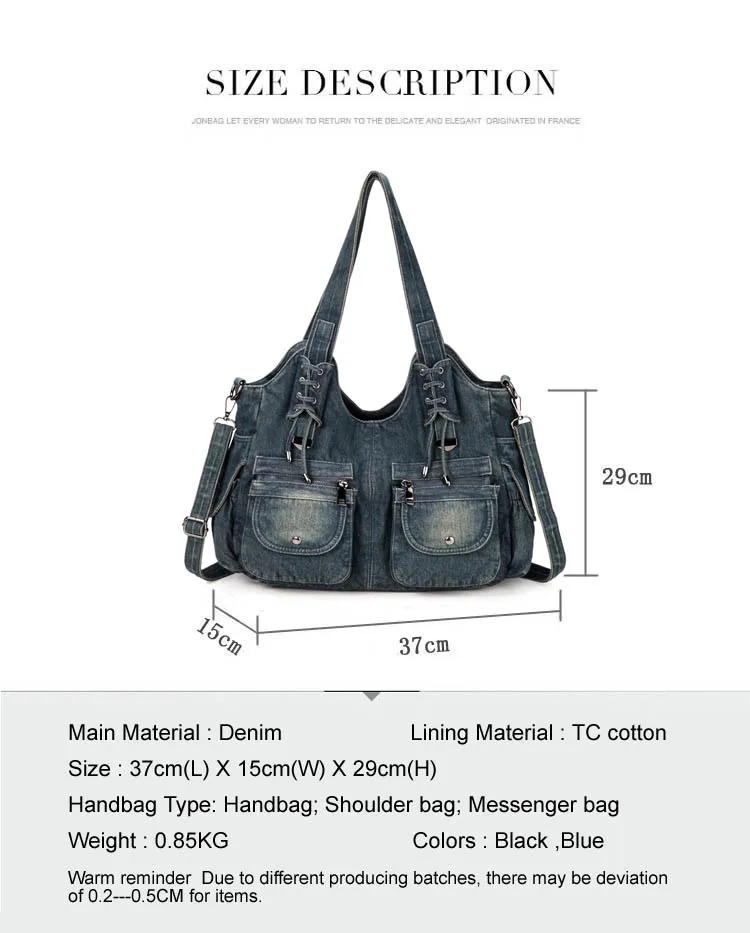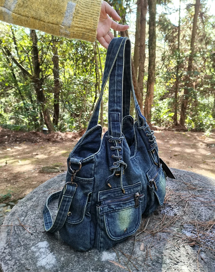 iPinee Women's Denim Bag Y2K Vintage Blue Jean Purse and Handbags Crossbody Shoulder Wallet Large Capacity