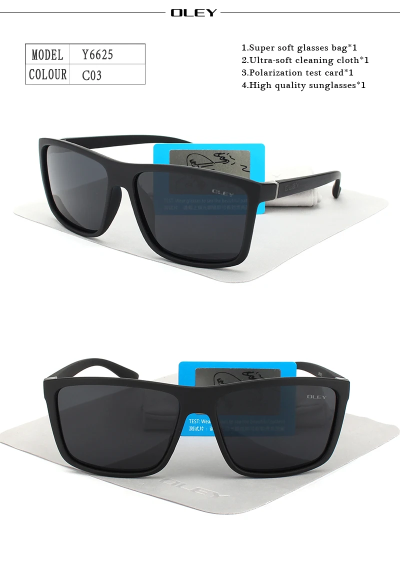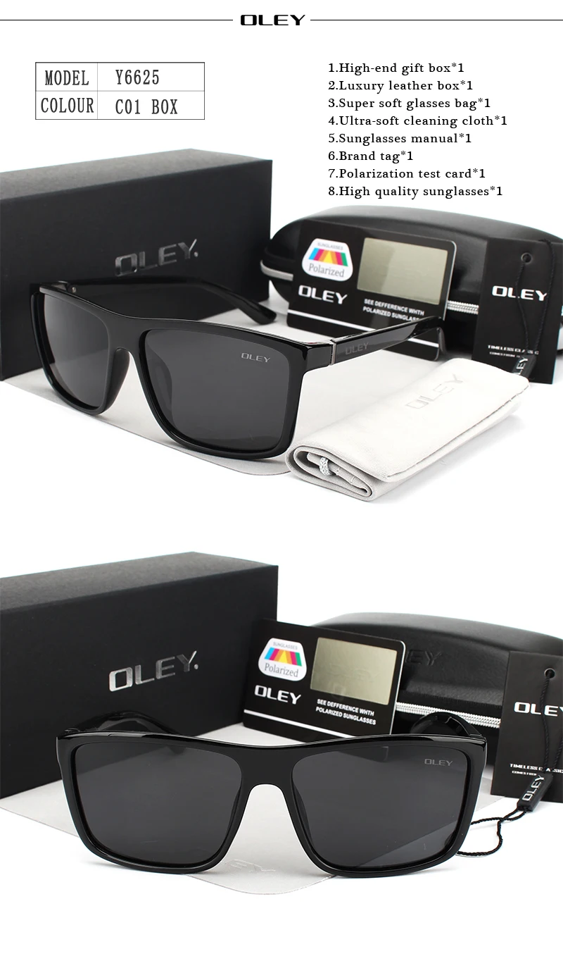 OLEY-Polarized Sunglasses for Men, Retro Square Sun Glasses, Unisex Driving Goggles, Brand Designer, Y6625