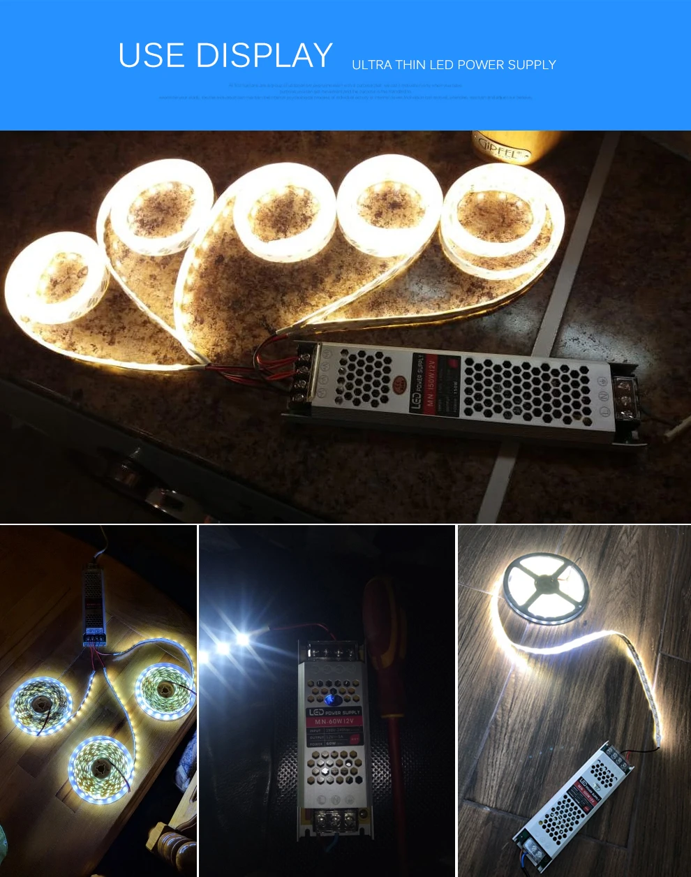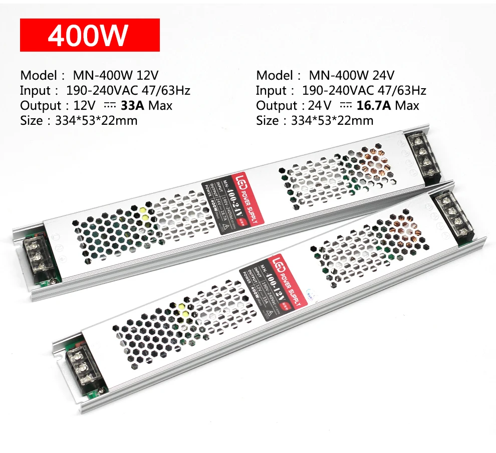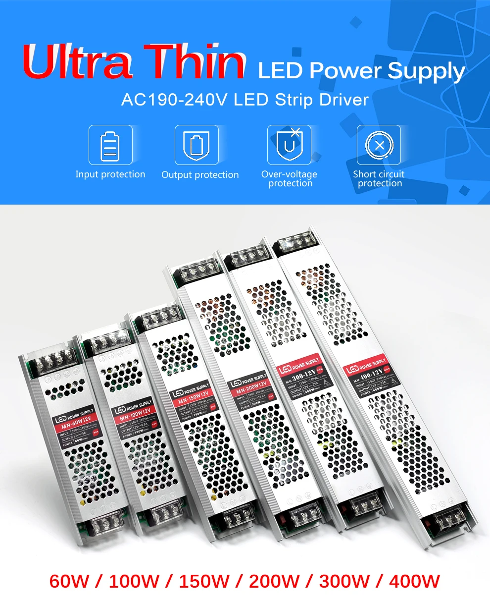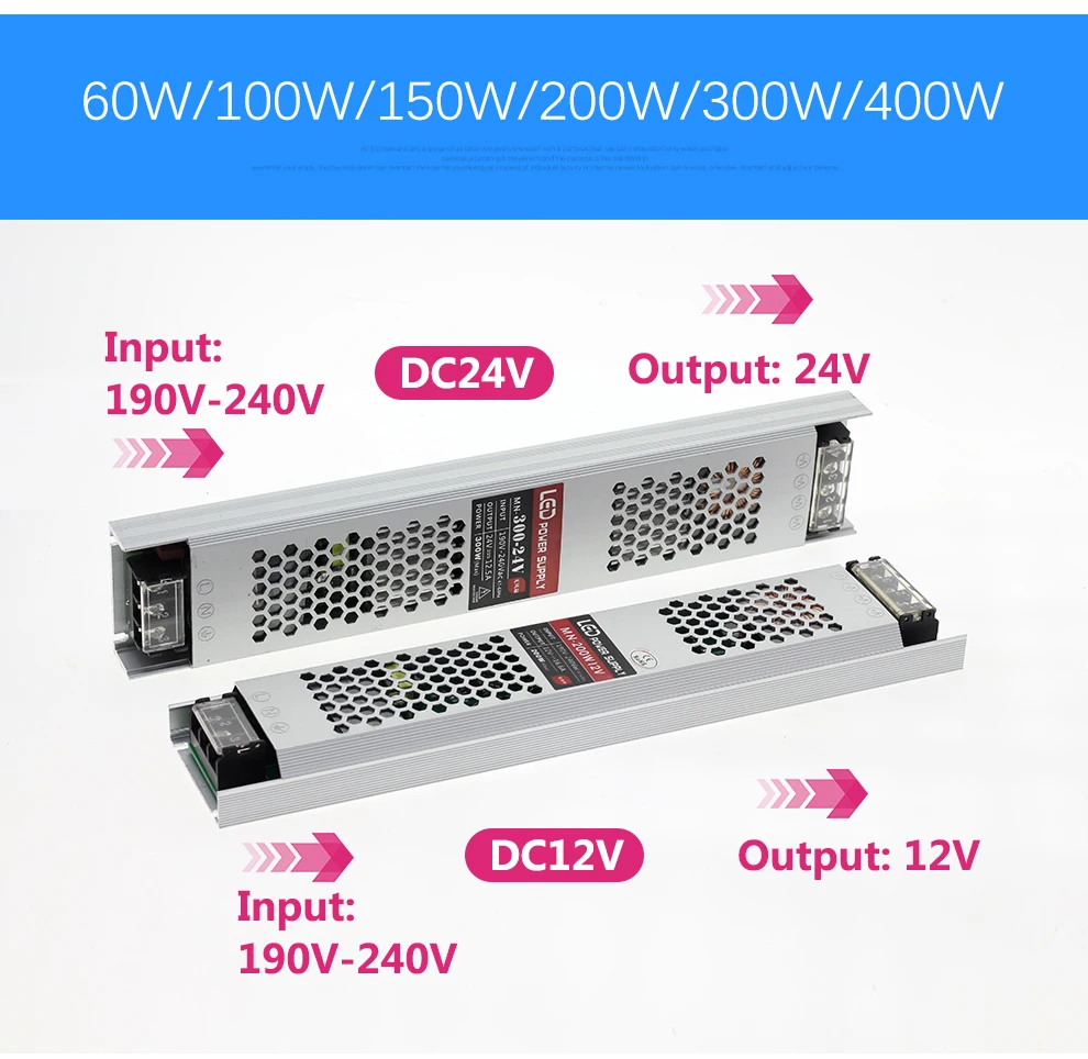 Ultra Thin LED Power Supply DC 12V 24V Lighting Transformers 60W 100W 150W 200W 300W 400W AC190-240V Driver For LED Strips
