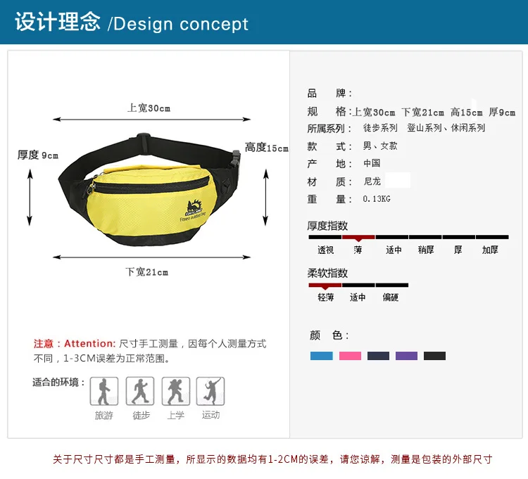 - The waist packs is good for outdoor sport, walking,hiking,traveling,running Cycling .